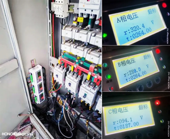 在電業(yè)局工作人員的配合下,運營工程師找到了該起隱患所在:是因托養(yǎng)院后院入戶電纜前端變壓器接地線損壞,導致入戶電壓升高和缺相嚴重超出標準閾值范圍。所幸發(fā)現(xiàn)及時,未造成火災事故和人員傷亡。
