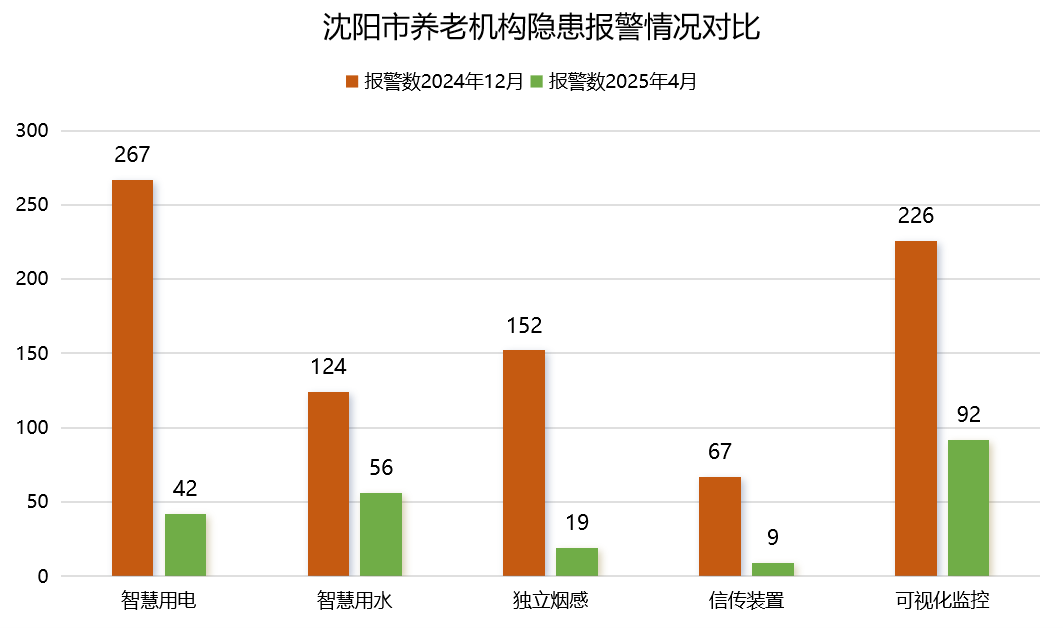 據(jù)最新統(tǒng)計顯示,沈陽市自“養(yǎng)老服務機構智慧安防系統(tǒng)”應用以來,2025年4月系統(tǒng)報警次數(shù)降至218次,較系統(tǒng)試運行初期(2022年12月)的836次銳減73.92%,智慧化監(jiān)管成效顯著。