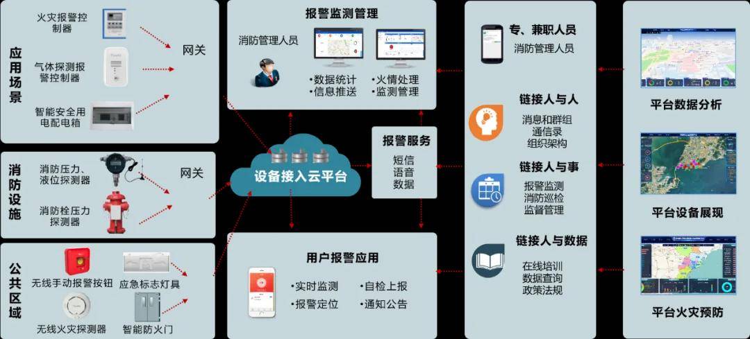 智慧消防的核心價值在于以“防消結(jié)合”為指引,以“人防+技防+智防”為技術(shù)融合,搭建“防消一體化”綜合監(jiān)管平臺。